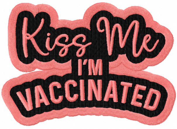Introducing the charming 'Kiss Me I'm Vaccinated' embroidery design, a fashionable and uplifting choice for those looking to spread love and positivity. This design is not only a statement piece but also a fun way to celebrate the spirit of togetherness in our current times.