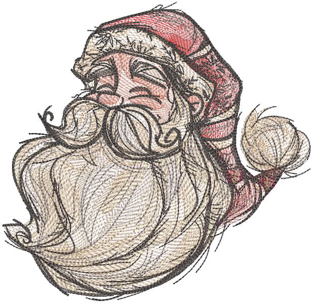 Cheerful Laughing Santa Claus Sketch Embroidery Design