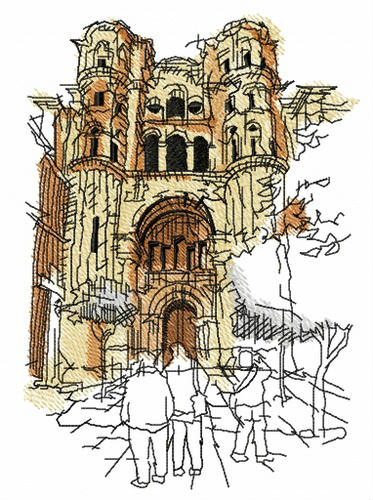 Ruined cathedral embroidery design