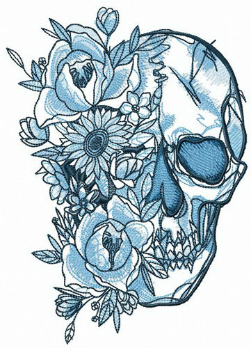 Skull Surrounded by Beautiful Flowers Embroidery Design