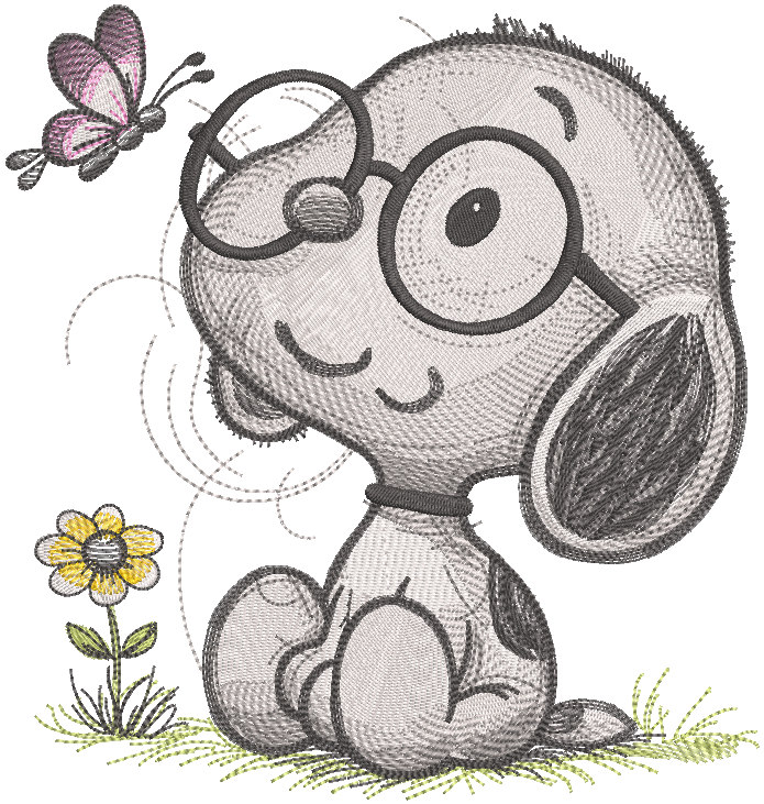 Cute Baby Snoopy Wearing Glasses Embroidery Design
