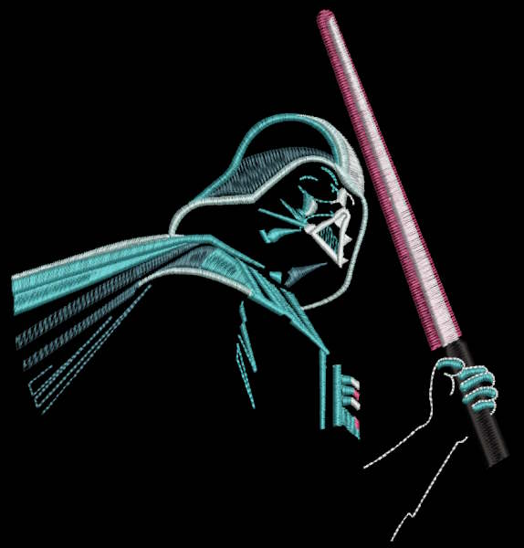 Unleash the power of the Dark Side with this striking galactic embroidery motif featuring the iconic Sith Lord wielding his glowing light saber. Whether you're a devoted Star Wars enthusiast or a crafter seeking intergalactic designs, this sci-fi stitching pattern captures the menacing presence and legendary status of one of cinema's greatest villains.