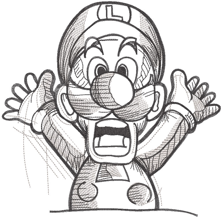 Emotional Luigi sketch embroidery design