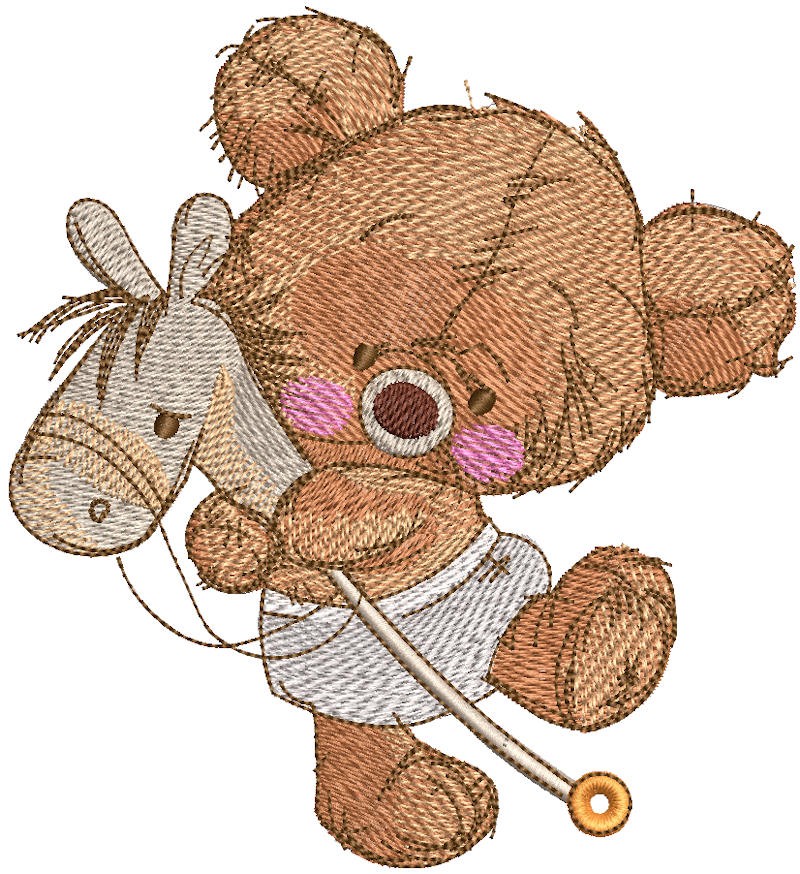 Don’t miss out on the opportunity to bring joy to your loved ones. Order your Teddy Bear with Horse on a Stick Embroidery Design today and make every cuddle count!