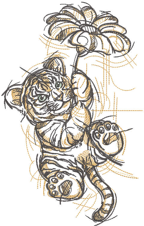 Introduce a touch of whimsy into your crafting projects with our delightful Tiger Cub Flying on Flower embroidery design. This enchanting stitched motif beautifully captures the playful spirit of a tiger cub amidst vibrant blossoms, making it a charming addition to any creative endeavor.