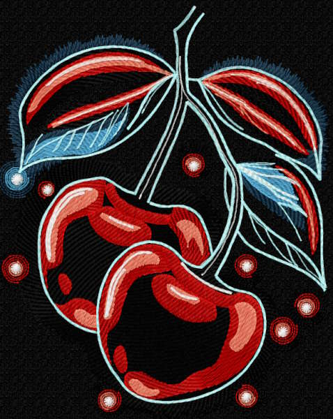 Cherries on branch embroidery design