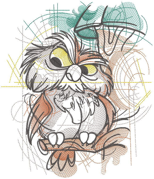 Owl on a branch sketch embroidery design