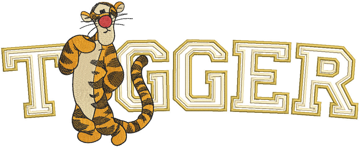 Whether you're creating gifts for young Winnie the Pooh fans or adding playful accents to your own collection, this athletic-themed motif brings cheerful energy and timeless character charm. The design combines sporty letter styling with Tigger's unmistakable striped personality, making it a standout choice for anyone who loves this adventurous character.