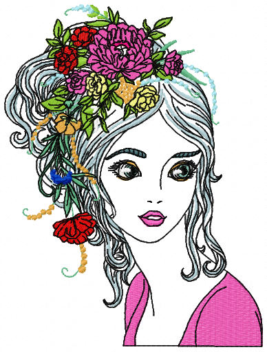 Girl with flowers in her hair embroidery design