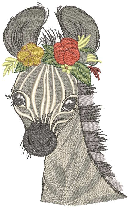 Zebra with Spring Flower Wreath Embroidery Design